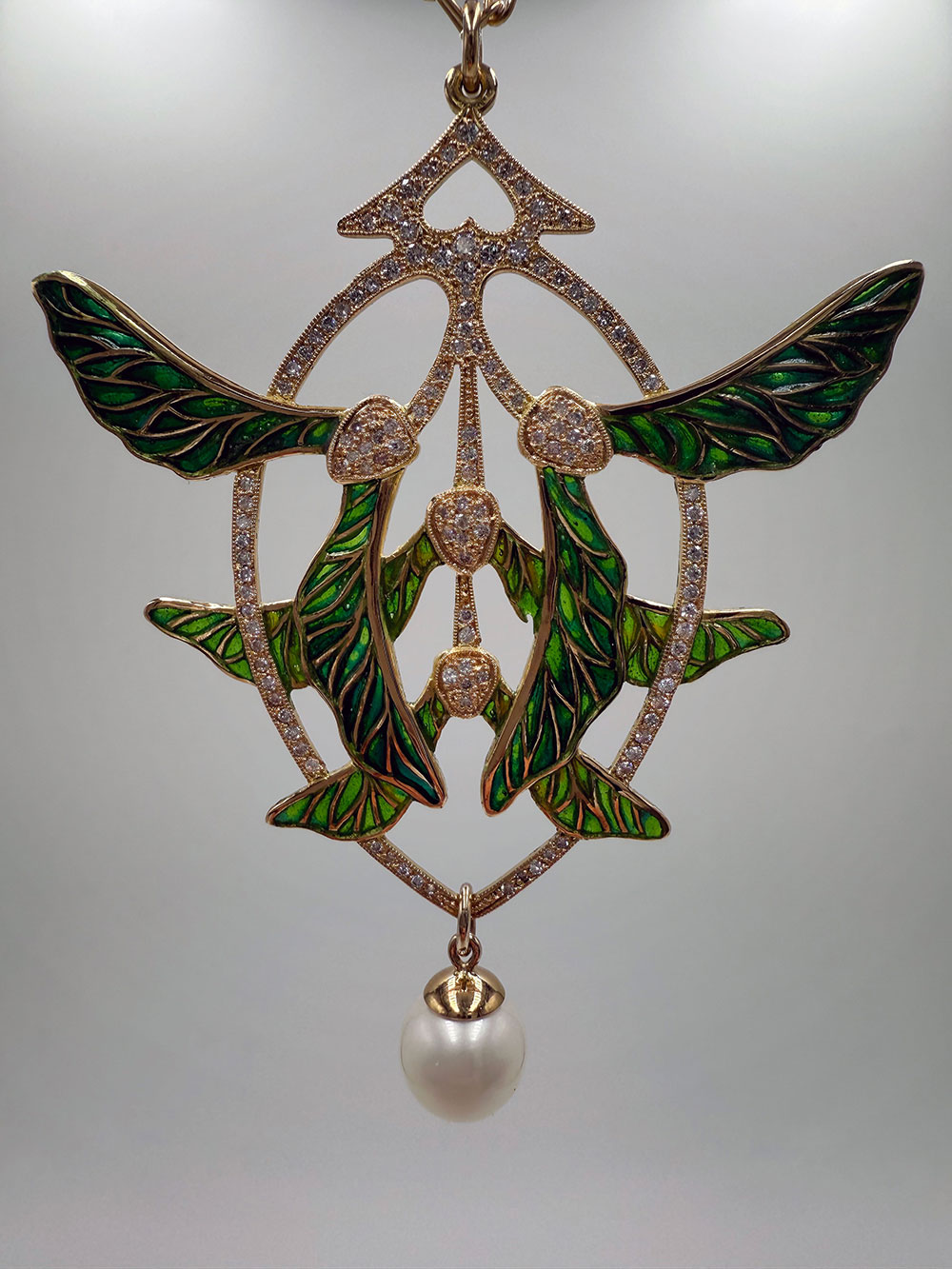 Technika „plique-à-jour” -emalia zastosowana w skrzydłach motyla, nadaje im niemal eteryczną lekkość,